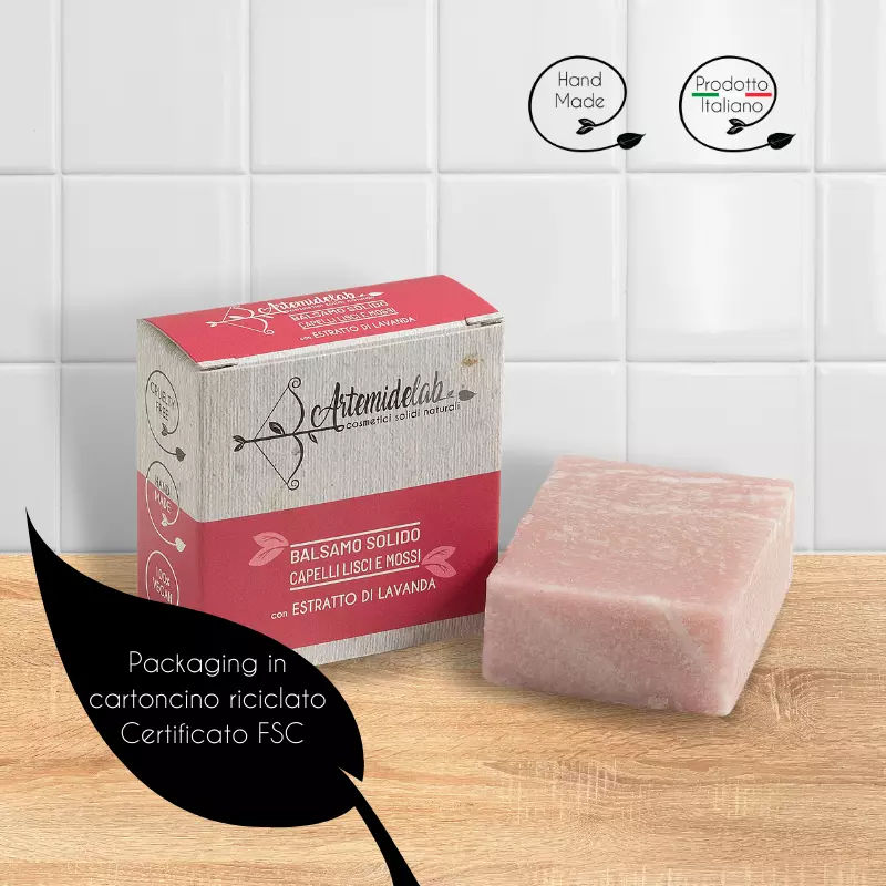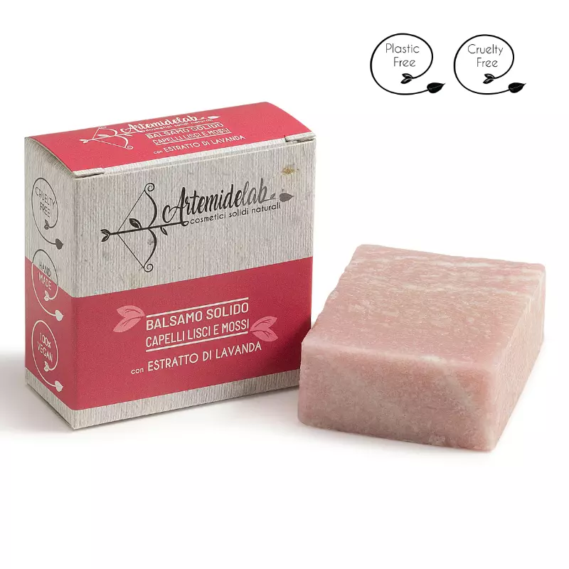 Il balsamo solido Artemidelab specifico per capelli lisci e mossi contiene estratto di lavanda, che svolge una funzione purificante e ammorbidisce il capello senza appesantirlo.