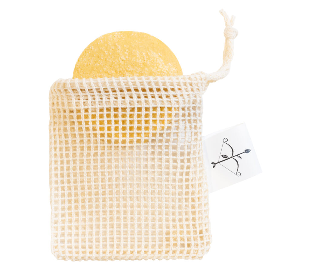 La struttura in rete permette ai cosmetici solidi al suo interno di traspirare e asciugarsi, ma anche di creare una piacevole schiuma a contatto con la pelle durante il bagno o la doccia.