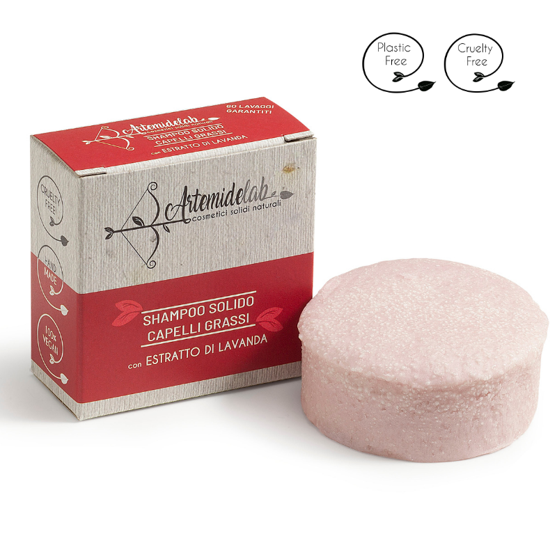 Shampoo solido specifico per capelli grassi contiene estratto di lavanda, che purifica il capello favorendo il ripristino del naturale ciclo di produzione del sebo.