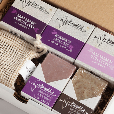 L’impronta carbonica dei nostri cosmetici solidi è minima, quindi, grazie alle materie prime di origine naturale, alle tecniche di preparazione e ai materiali di imballaggio impiegati nel confezionamento. La compattezza dei cosmetici solidi li rende anche meno ingombranti durante il trasporto: basta sostituire i flaconi per generare meno emissioni.